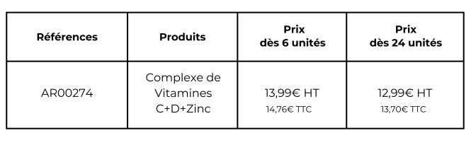 Le Complexe de Vitamines C + D + Zinc est un mélange unique de vitamines et minéraux, indispensables pour être en bonne santé! Il favorisera la protection et le fonctionnement normal de l’organisme. Notre complément alimentaire est compatible avec le Plasma Marin.